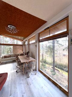 Дом -клееный брус, фундамент ленточный(есть подвал, не большой) . Установлены качественные панорамные окна. Дом очень теплый, светлый и уютный. 2021гп. 2 колодца с чистейшей водой, электричество 15 кВт(финская проводка в гофре) . Есть резервный дизельный генератор с шумоподавлением на 15 кВт. Отопление электрическое, есть камин. На первом этаже теплый пол. Канализация-септик.