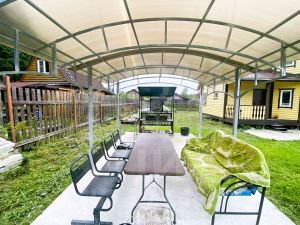 Участок 8,8 соток. Участок ровный сухой, засеян газоном. На участке оборудовано место для отдыха с мангальной зоной.