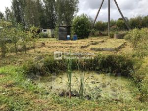 На участке находится недостроенный двухэтажный дом с ленточным фундаментом, огород, теплица, пруд и колодец, а также хозяйственные постройки. Подведено электричество мощностью 15 кВт с установленным электрическим щитом.