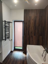 В доме завершены все черновые и отделочные работы, заведены коммуникации, закончены инженерные работы: отопление, водоснабжение, канализация, тёплые полы, электрика, установлена лестница и пр. Все работы были выполнены по дизайн-проекту и инженерным проектам.