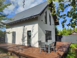Терраса увеличенной ширины (3 метра) по двум сторонам дома. Материал покрытия террасы: террасная доска 2025г.