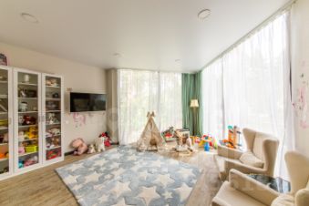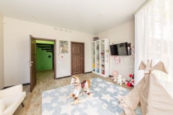 Второй этаж — приватная зона для семьи: главная спальня 20 м², светлая детская игровая, ещё одна спальня, гардеробная и просторная ванная. Всё продумано так, чтобы каждый член семьи чувствовал себя в своём личном пространстве — спокойно и комфортно.