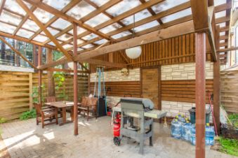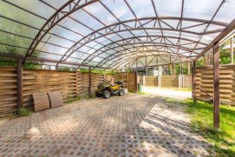 Участок полностью благоустроен: ландшафтный дизайн, аккуратные дорожки, зелёные зоны и хозяйственная постройка с гриль-зоной. Для детей есть современная площадка, а для автомобилей и велосипедов — крытый навес. Все коммуникации уже подключены: газ, вода, электричество, интернет — можно заезжать и жить без дополнительных вложений. Установлена система умного дома.
