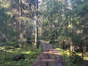 Участок сухой и ровный, расположен в окружении хвойного леса.