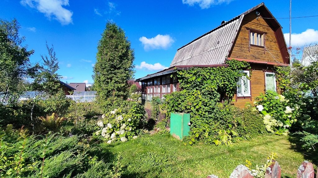 В городе Сосновый Бор Ленинградской области в СНТ Парус продается земельный участок с садовым домом. Земельный участок 644 кв.м. На участке деревянный дом (из бруса 17,5 см х 17,5 см) 1995 года постройки с утеплением, обшит деревянной вагонкой. Площадь дома: 64,5 кв.м. На первом этаже: крыльцо: 1,2 кв.м., веранда 12,2 кв.м., комната 16,3кв.м., кухня 6,4 кв.м. прихожая 3,7 кв.м. Отопление печное. В мансарде: коридор: 4,6 кв.м., комната: 11,3 кв.м., две кладовки по 4,4 кв.м. каждая. На веранде (летней кухне-столовой) газ - баллон. Участок правильной формы, разработанный, ухоженный, с посадками, многолетними растениями и цветами. Есть металлический гараж 15,6 кв.м., сарай 10 кв.м., баня 10 кв.м. (требует ремонта), теплица на фундаменте 3х8 метра, туалет на улице. Колодец с технической водой на 3 кольца. Электроэнергия до 15 кВт. Межевание участка проведено, участок идентифицируется на кадастровой карте (кадастровый номер: 47:15:0110025:43). На участке плодоносящие деревья и кусты: яблони, сливы, крыжовник, смородина, вишня, жимолость, малина, виноград и т.д. Многолетние цветы и кустарники: жасмин, сирень, черемуха, калина, облепиха, лилии, гортензии, пионы, барбарис и т.д. До автобусной остановки в город Сосновый Бор 3-4 минуты пешком. Регулярное автобусное сообщение. В собственности более 3-х лет. Прямая продажа. Оперативный просмотр.