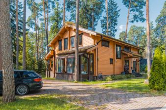 Готовый для проживания дом с 4 спальными комнатами на рельефном участке с соснами, в закрытом охраняемом поселке на 17 домов.