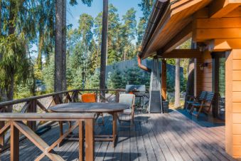 Современный дом из клеенного бруса на монолитной плите, постройка закончена в 2017 году, застройщик Greenside.