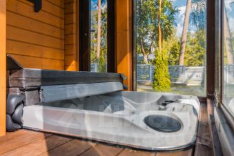 - На первом этаже котельная, кухня-столовая, гостиная со вторым светом, санузел, сауна, комната свободного назначения (гардеробная/спальная/кабинет), застекленная терраса с уличной гидромассажной ванной, открытая терраса с видом в сторону залива.