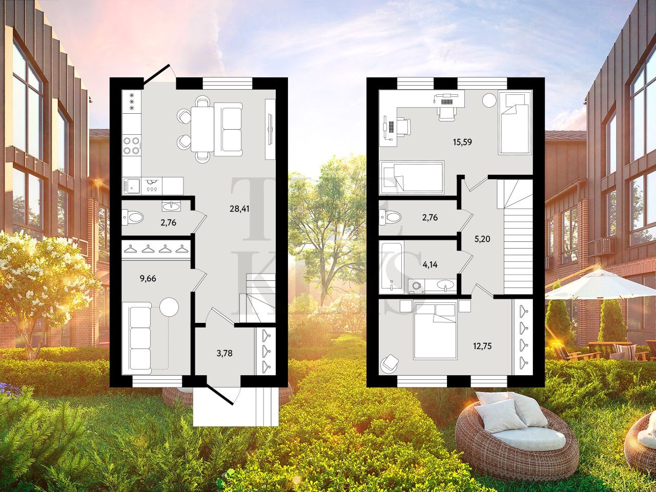 Просторный 2-х этажный таунхаус с собственным участком и двумя парковочными местами в Петродворцовом районе в ЖК "Алгоритм Стрельна"!