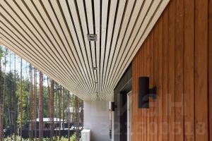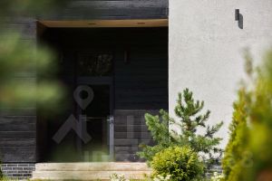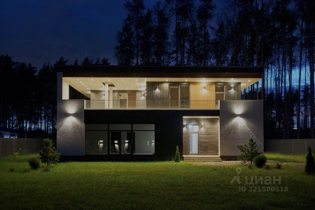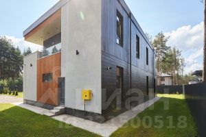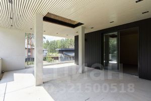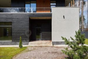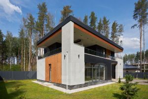 Современный каменный дом в стиле хай-тек расположен на второй береговой линии Невы. Здание возведено на монолитном фундаменте с ростверком, стены выполнены из газоблока с утеплением 100 мм. Перекрытия — монолитные, крыша также монолитная, утеплённая, с гидроизоляцией, пароизоляцией, геотекстилем и стяжкой с разуклонкой. Установлены два водослива в тыльной части. Наружная отделка фасада сочетает декоративную штукатурку, фиброцементный сайдинг и натуральную лиственницу. Фасад вентилируемый. Высота потолков — 3.8 м на первом этаже и 3.6 м на втором. Отопление реализовано тёплым полом на обоих уровнях. Установлены энергоэффективные окна Rehau. По фасаду выполнено уличное освещение, предусмотрена система наружного водоотведения с зимним закрытием.