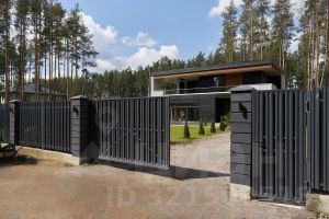 Участок 12 соток. Правильной формы, отсыпан, выполнена система дренажа. Периметр огражден забором из двойного евроштакетника на монолитном фундаменте с заглублением 100 см. Откатные ворота с дистанционным управлением обеспечивают удобный въезд. Имеется проект ландшафтного дизайна с продуманным озеленением и зонированием территории.