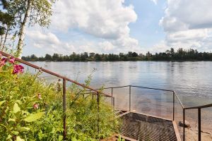 Дом расположен в живописном месте на второй линии от берега Невы. Участок окружён природой, при этом обеспечен удобным подъездом и близостью к основным транспортным магистралям. Район активно развивается, здесь сочетаются тишина загородной жизни и доступ к городской инфраструктуре. Подходит как для постоянного проживания, так и для загородной резиденции.