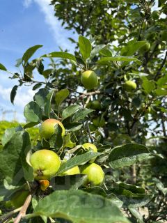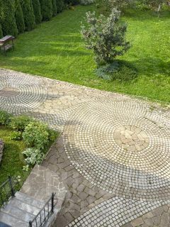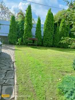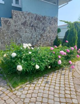 Территория дома благоустроена плодовыми деревьями, кустарниками, цветами.