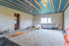Дом из газоблоков (74,4 м²), с монолитным железобетонным фундаментом, обеспечивающим долговечность конструкции. Планировка дома: 2 комнаты, прихожую, кухню-гостиную, санузел и помещение под котельную. Все помещения утеплены, установлена новая входная дверь с тепловым контуром, большие окна Rehau. Проведены наружные работы: утепление, отделка сайдингом, навес над террасой, кровля из металлочерепицы. Внутренняя отделка не начата, что позволяет адаптировать пространство под индивидуальные предпочтения.