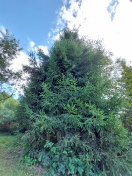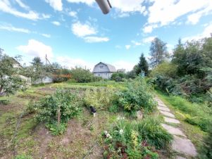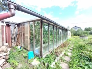 На участке растут большие красивые ели, фруктовые деревья, плодовый кустарник. Много цветов. Есть две теплицы и грядки для овощей.