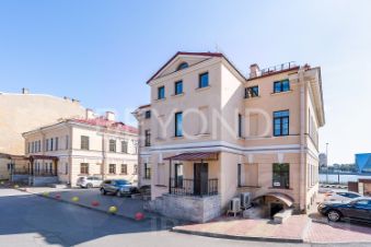 На первой линии Невы расположился комплекс особняков, состоящий из двух зданий: земельного участка и наземной парковки во дворе, на месте которой возможно возвести гостиничный или административно-деловой комплекс общей площадью порядка 3000 кв.м.