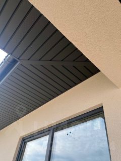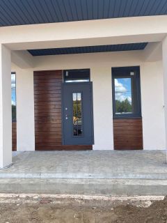 Дом 167 м2 из газобетона 400 мм, на фундаментной плите 300 мм. Фасад: штукатурка и планкен.