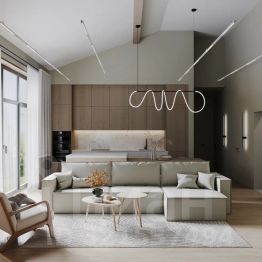 - просторная кухня-гостиная 34 м² с выходом на террасу