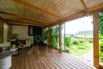 Основной дом и гостевой соединены между собой закрытой и полностью застекленной террасой.