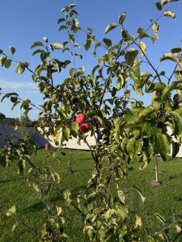 Посажены деревья яблони (уже с плодами,что то скушали),ирга,груша и другие