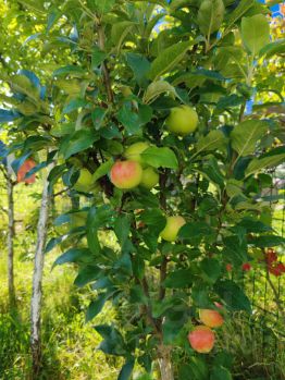 На участке: плодоносящие деревья, которые будут радовать вас весь сезон (вишни, яблони, сливы), плодоносящие кусты (жимолость, смородина, малина, ежевика и даже голубика). В апреле-мае распускается прекрасный миндаль.