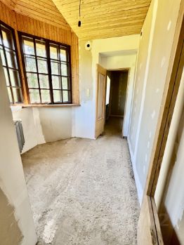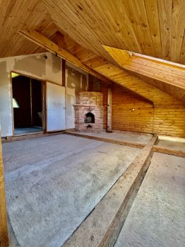 1 этаж: Высокие потолки, светлая гостиная с камином для зимних вечеров, кухня, выходящая в сад, и санузел.