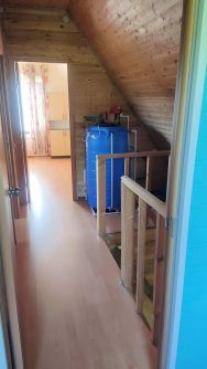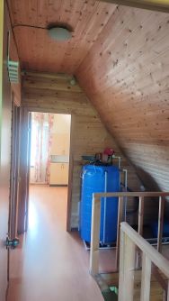 Дом каркасный 2этажа. На 1-м прихожая, санузел, кухня-гостинная,печь чугуная, на 2-м три комнаты. Во всех комнатах конвекторы. На 1-м эт.с повышенной безопасностью. (когда зимой ездили, оставляли включённым, чтоб приезжать в тёплый дом)