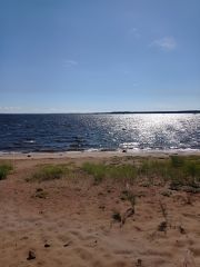 Можно выходить в открытый залив по реке, 250м, глубина 3 м.