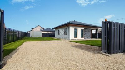 Участок 5,5 соток в стильном минималистическом дизайне с декоративной отсыпкой и газоном которая удачно подчеркивает стиль дома с легкостью разместит 2 автомобиля на подготовленной парковке.