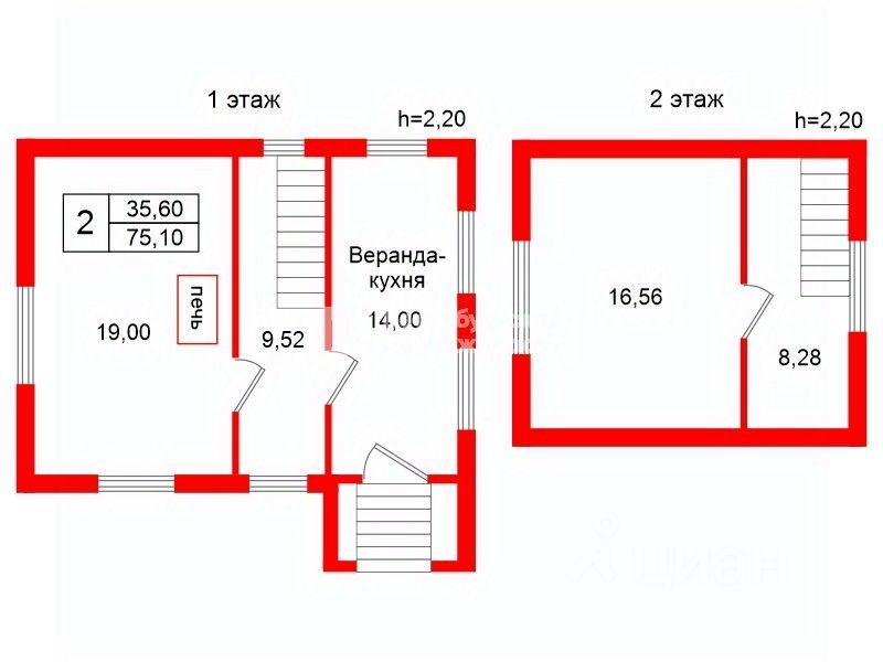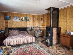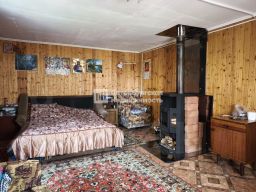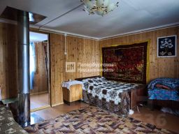 Дом 2-х этажный, стоит на ж/б блоках, из бруса, снаружи обшит сайдингом, внутри вагонкой. На первом этаже кухня, комната, просторное межкомнатное пространство. На втором этаже комната.