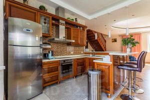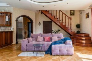 Качественная отделка и оборудование: пол выложен итальянской плиткой, установлена качественная итальянская кухня, лестницы и двери изготовлены из натурального дуба, окна отличаются прочностью и долговечностью.