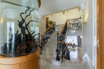 Все сантехническое оборудование: ванна, раковины, унитазы, инсталляции, душевая система от Geberit и Migliore. На стенах итальянская плитка. Постирочная оборудована стиральной и сушильной машинами Miele. В доме есть инфракрасная сауна Helo. Везде, где на полу уложена плитка, оборудованы теплые полы. В освещении использованы итальянские светильники и люстры от Flos, электрооборудование от Bticino. Ажурные мраморные лестницы между этажами с кованым узором на перилах. На втором этаже в холе, установлен оригинальный круглый аквариум на 500 л.