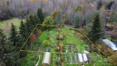 Участок 33х30 метров. Есть возможность официально увеличить на 2 сотки. Заезд на участок возможен с двух дорог.