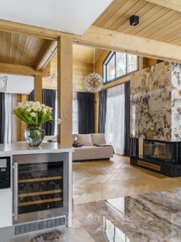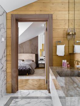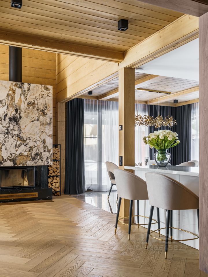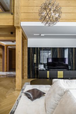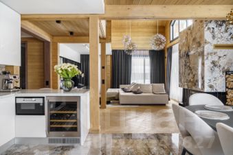 • В отделке интерьера использованы премиальные экологичные материалы, вся мебель выполнена на заказ по эскизам дизайнеров