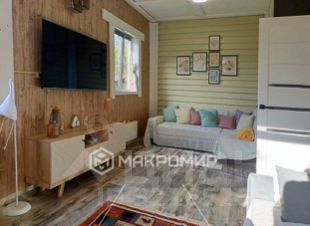 В доме две комнаты (гостиная и спальня), отдельная кухня с панорамным выходом на террасу, две прихожие, совмещённый санузел. Планировка дома очень продуманная и комфортная.