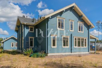 Основное отличие от других предложений в этом коттеджном поселке - дом располагается на сдвоенном участке в 37 соток, в отдалении от дорог, с видом на зелень и деревья, что создает ощущение уединенности. Рядом располагается детская площадка с прогулочной зоной.
