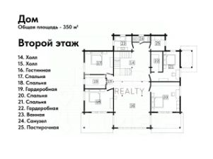 Четыре полноценные спальни (от 15,5 до 21,8 м), каждая с личной гардеробной.