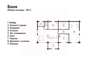 Роскошная баня 68 м: Настоящий SPA-комплекс с парной, хаммамом, душевой с купелью и уютной комнатой отдыха.