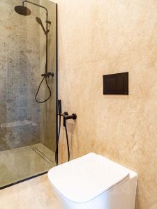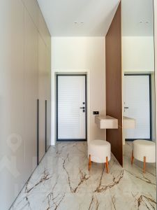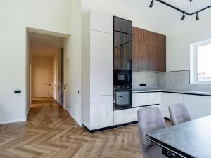 - Кухонная мебель со всей необходимой техникой: встроенный холодильник, посудомоечная машина, варочная поверхность, духовой шкаф