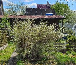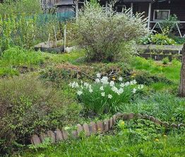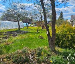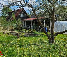 На участке есть теплица, плодовые кусты, яблони и цветы.