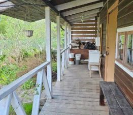 Продается участок с домом. Дом двухэтажный, площадью 87 м². Построен из бруса и вагонки. На веранде алюминиевые раздвижные окна, на втором этаже — окно с стеклопакетом. Внутри дома везде вагонка. Фундамент ленточный, есть бетонные отмостки. В доме установлена печь, первый этаж утеплен для комфортного проживания зимой.