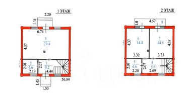 На втором -две спальни (14.4 м² и 14.6 м²) с балконом и видом на зелёную зону, совмещенный санузел с ванной.
