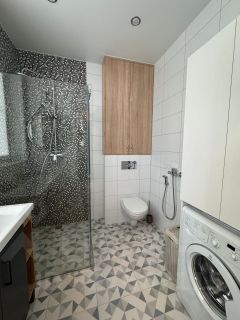 Выполнен современный ремонт с использованием качественных материалов и грамотной разводкой всех коммуникации: установлен новый современный газовый двухконтурный котел, магистральный газ, система отопления разведена по дому, водяные теплые полы установлены по всему периметру первого этажа, электричество, центральный водопровод и канализация. Перед домом есть парковочное место для двух авто, вымощенное тротуарной плиткой.