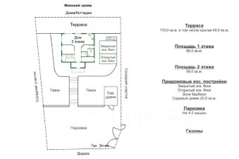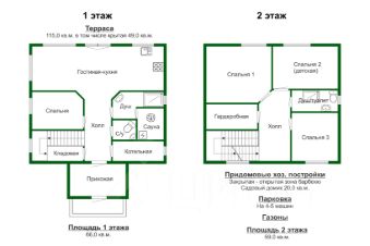 Санузлы на каждом этаже, спальни, сауна и зоны хранения.
