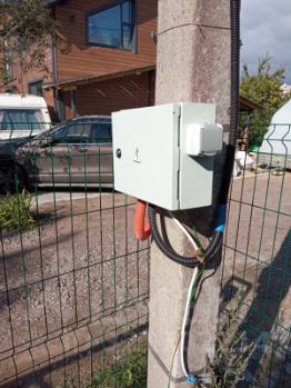 •Дом огорожен забором - рабица, имеет входную группу-откатные ворота с электроприводом и калитку.