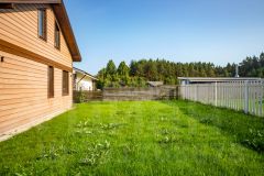 На участке есть зона барбекю с детской площадкой. Участок обработан, растут сосны и туи.