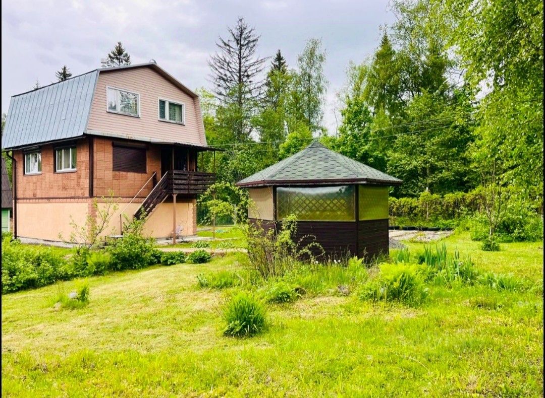 Предлагается к продаже очень  крепкий, теплый жилой дом в непосредственной близости к лесу. Площадь дома 140 м.кв. Два участка по 5,5 соток. Первый этаж из железобетонных плит, второй и третий этаж брус. Окна на втором этаже пластиковые с рольставнями, на третьем деревянные. На первом этаже гараж, можно сделать смотровую яму или кессон, душевая, туалет, кладовая (можно переоборудовать в сауну), гардеробная. Второй этаж кухня и гостиная, шведский камин, итальянская лестница. Третий этаж две спальни и гостиная. Вода в дом подаётся с помощью скважинного насоса, есть станция биоочистки. Электричество 15 кВт, можно увеличить.