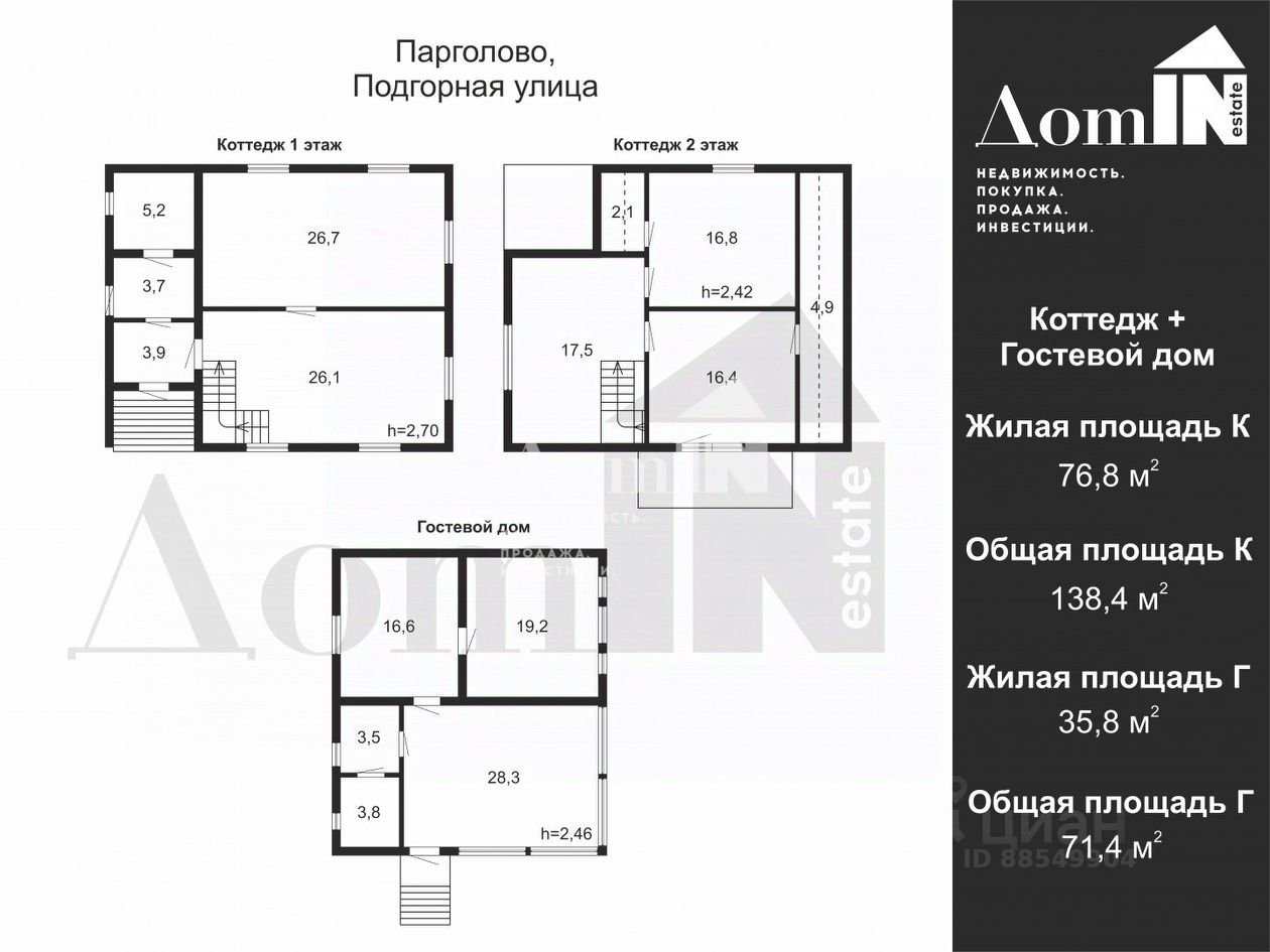 Арт. 116416014 Срочно! Встречная покупка подобрана. Реальному покупателю скидка. В Санкт-Петербурге, в поселке Парголово, на ул. Подгорная продаётся коттедж+ гостевой дом + баня, общей площадью 260 кв.м, с участком 13.5 соток, ИЖС. Помещения распланированы так, что могут жить 3 семьи , отдельно друг от друга, с отдельными входами, не мешая друг другу.