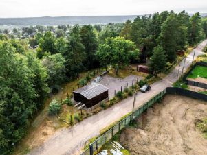 Расположен на красивом природном склоне, откуда открывается завораживающий вид на сосновый лес