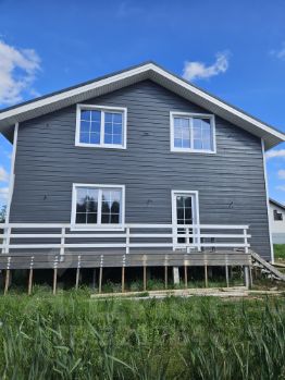 Дом зимний, теплый, для круглогодичного проживания, построен по каркасной технологии опытной бригадой строителей. Технические характеристики соответствуют установленным ГОСТАм. Отделка из качественных, долговечных материалов, отлично подобраны по стилю и цвету.
